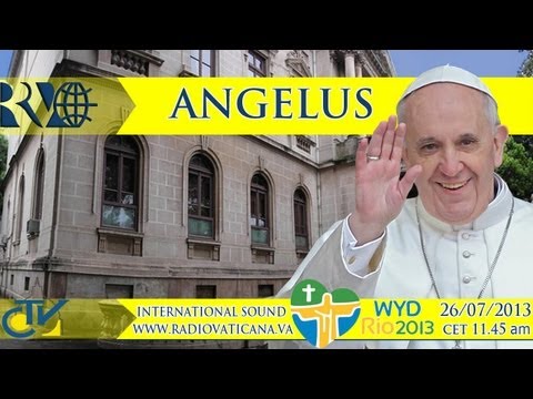 Papa Francisco aparece en el balcón del arzobispado de Rio de Janeiro para el Ángelus y saluda a los presentes.