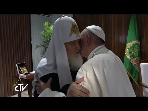 Papa Francisco y Kirill se abrazan, un abrazo entre la Iglesia católica y la Iglesia ortodoxaEl papa Francisco y el patriarca de la Iglesia ortodoxa rusa, Kirill, se reunieron en la Habana este viernes 12 de febrero.