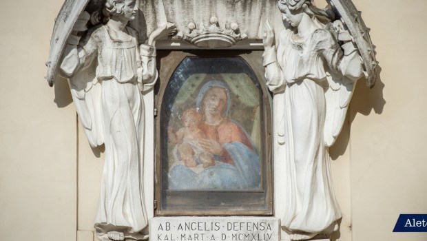 Después de los eventos bélicos, y después del hecho milagroso, el Oratorio de San Pedro encomendó la colocación de la imagen en el nuevo marco de mármol, cuyos lados están protegidos por dos grandes ángeles con escudos clavados. La inscripción de abajo dice: Ab angelis defensa – Kal. Mart. A. D. MCMXLIV.
