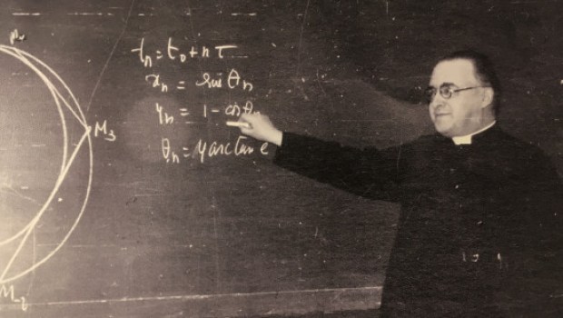 Georges Lemaître, (1894-1966) fue un canónigo, astrónomo y físico belga. Su “teoría del átomo primigenio”, que describe un universo que comenzaría con una singularidad inicial que podría explicar el origen del universo, constituye el fundamento de la teoría del Big Bang. En 1960, Juan XXIII le nombró presidente de la Pontificia Academia de las Ciencias.
