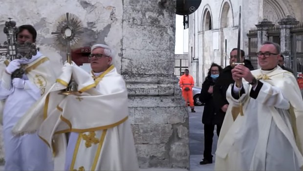 “Hoy queremos invocarlo porque, como en el pasado, en los varios momentos de prueba, de desastres naturales e incluso de peste, nuestros antepasados lo invocaron y siempre tuvieron su ayuda. Su intercesión trajo una salvación prodigiosa para el Monte Sant’Angelo durante el periodo de la plaga de 1656. Hoy, invocamos su intercesión junto al Señor para salvar no solo el Monte Sant’Angelo sino toda Italia, todos los de Gargano y el mundo entero de esta epidemia”.