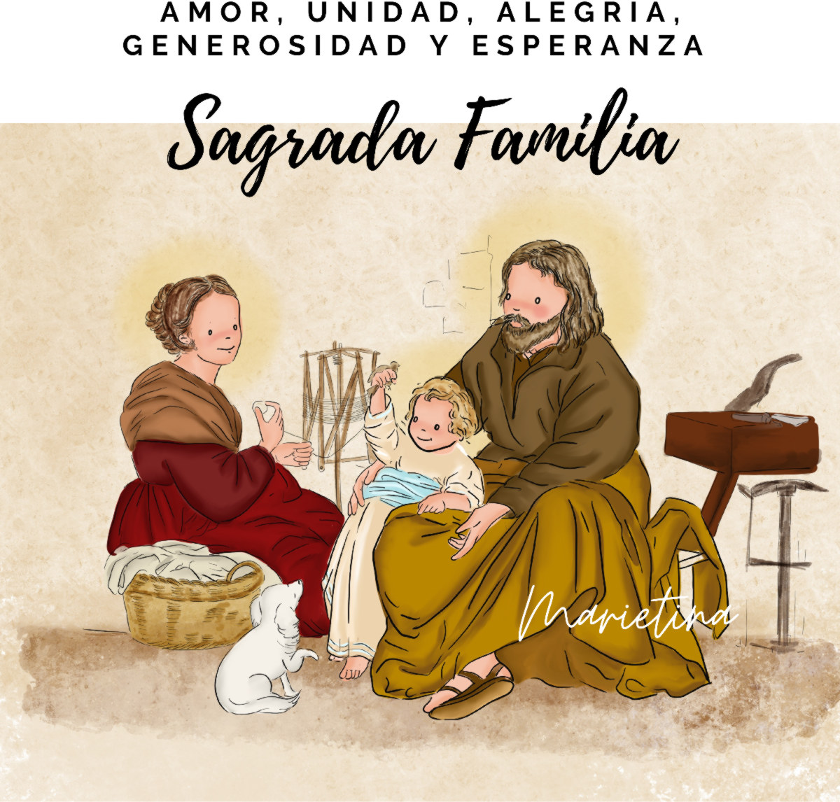 La ilustradora católica Marietina echa hoy la mirada atrás, cuando ya es madre de 4 hijos y abuela del pequeño Mateo. Considera una suerte el giro que dio su vida al quedarse en el paro en aquel aparentemente fatídico 2008: "El hobby lo convertí en profesión", se dice.