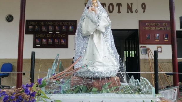 La llaman la "Virgen de la Protección", no porque exista esa advocación mariana, sino porque un militar de alto rango al recibirla dijo: “Esta es la Virgen de mi protección”. Y efectivamente salvaguardó la vida de todos los que allí se encontraban el pasado martes en la tarde, cuando terroristas activaron la carga explosiva, que habían logrado ingresar en un vehículo a la instalación militar.