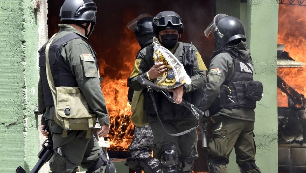 En medio de esto, una situación cargada de violencia que dejó varias personas heridas y la quema de patrullas en una estación policial, también una imagen particular captada por AFP: la de un policía antidisturbios saliendo de la comisaría en llamas con la Virgen de Copacabana en manos.