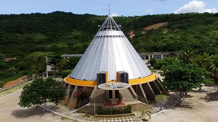 El santuario tiene una forma cónica que, por su belleza y originalidad, fue elegido por voto popular como una de las siete maravillas de Rio Grande do Norte.
