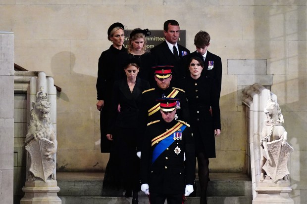 El sábado 17 de septiembre, por primera vez en la historia de la monarquía británica, se llevó a cabo una Vigilia de los Nietos en Wesminster Hall (la Sala de Westminster). El príncipe William y el príncipe Harry (hijos del rey Carlos III), Peter Phillips y Zara Tindall (hijos de la princesa Ana), Beatriz y Eugenia de York (hijas del príncipe Andrés), y Lady Luisa y Jacobo Windsor (hijos del príncipe Eduardo) estuvieron durante 15 minutos resguardando el ataúd y rezando por el alma de su monarca, pero sobre todo, su abuela.